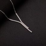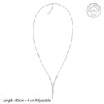 The Inspiration: The Silver Collide Necklace is inspired by when our paths cross with someone and we realize that they are the ones we want to spend our lives with. The Design: The silver necklace has zircons studded on the necklace with a y-shape at the end. 925 Silver AAA+ Quality Zircons Dimensions: 6.3 cm x 0.5 cm The necklace length is 42 cm and the adjustable chain is 4 cm Rhodium finish to prevent tarnish Comes with the Nikrish Jewellery kit and authenticity certificate Net Qty – 1 unit Styling Tip: Style this with a plunging neckline maroon dress.