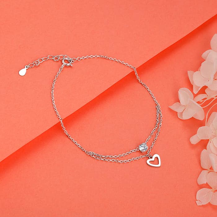 The Inspiration: The perfect gift for your mother! Treat your mom and yourself to this beautiful anklet and twin with your OG. The Design: This silver anklet features a zircon and a charming heart in a different layer. 925 Silver Perfect for sensitive skin Length of Chain: 25.5 cm + 4 cm Adjustable Comes with the Nikrish Jewellery kit and authenticity certificate Content: Anklet Net Qty- Single or pair, as chosen by you! Styling Tip: Suit this with a yellow midi dress.