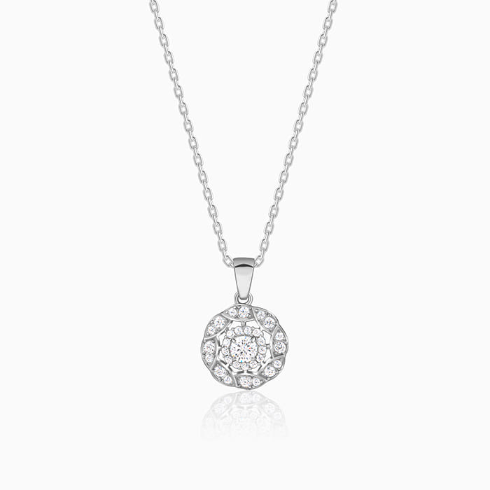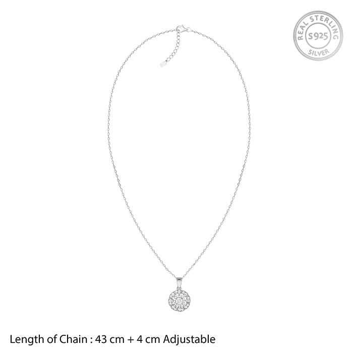 The Inspiration: A full-on petal-powered moment! Wear it when you’re feeling sweet but unstoppable. The Design: This womens silver pendant features a floral motif with intricate detailing work, set with dazzling zircons. 925 Silver Perfect for sensitive skin Motif Height: 2.0 cm, Motif Width: 1.3 cm Length of Chain: 43 cm + 4 cm Adjustable Comes with the Nikrish Jewellery kit and authenticity certificate Content: Pendant with Link Chain Net Qty- 1 unit Styling Tip: Pair this silver pendant with a black dress.