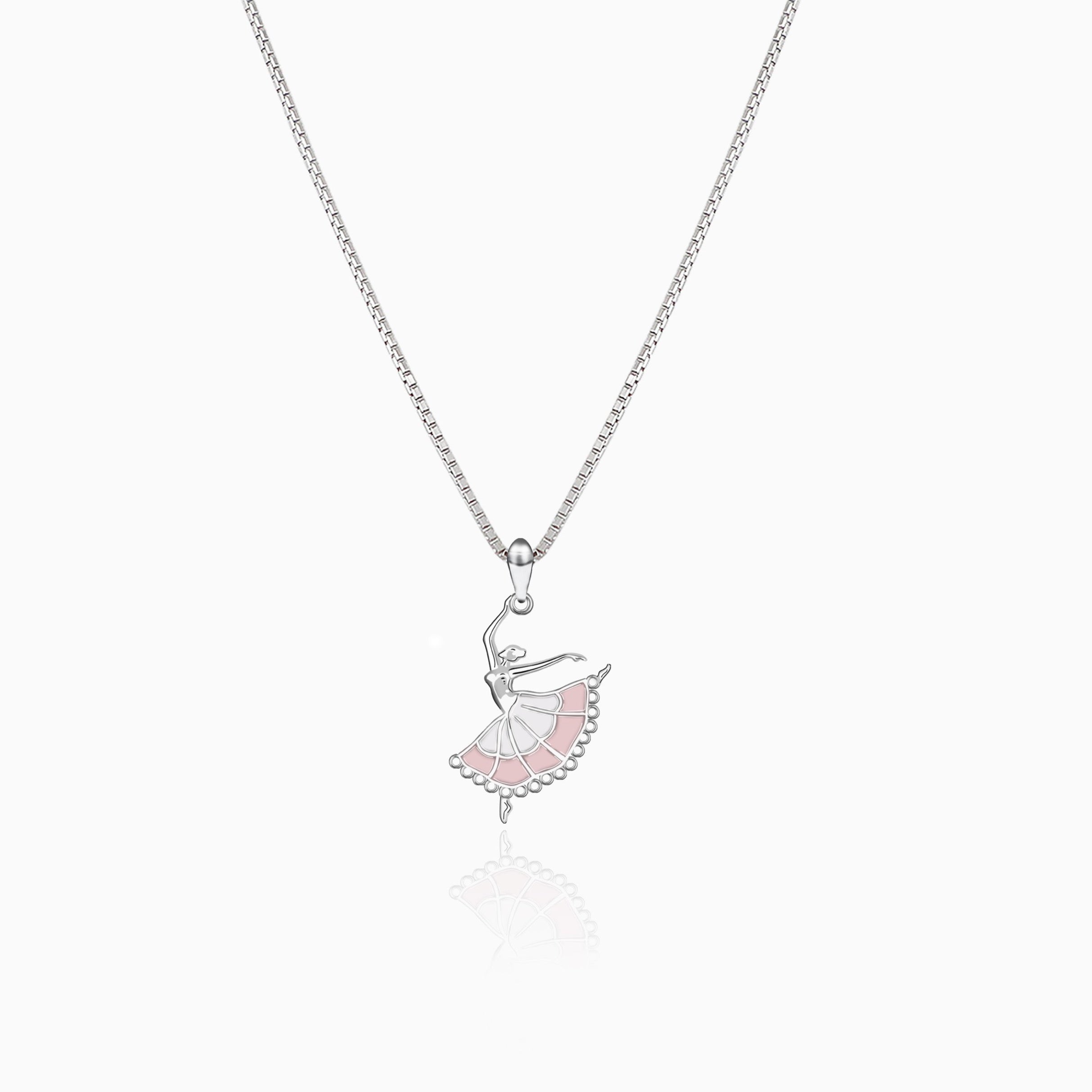Silver Dancing Ballerina Pendant with Box Chain
