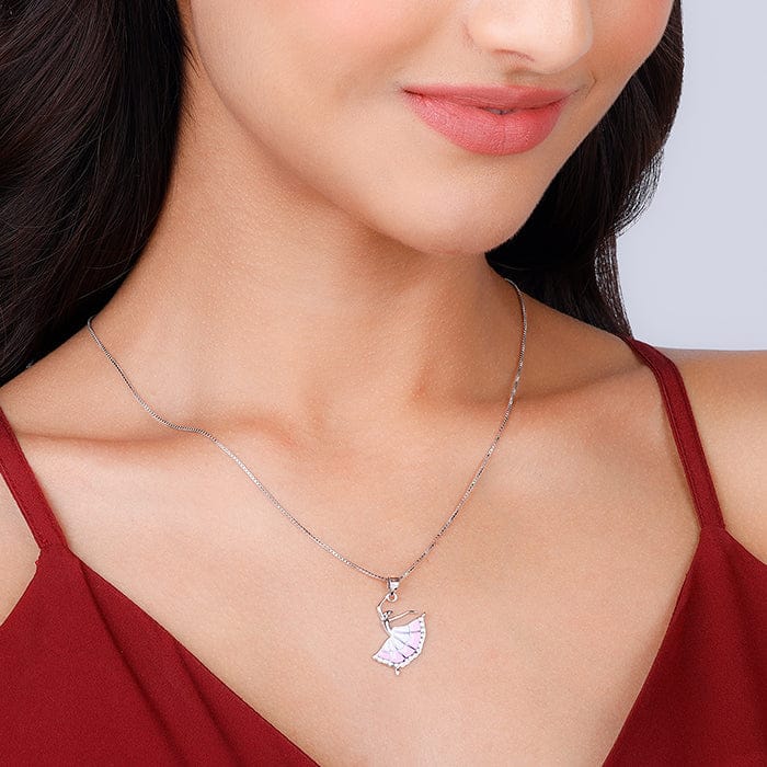 The Inspiration: YOU have always danced to your tune, regardless of what the world may think. Inspired by the poise and grace YOU exude while waltzing through the symphony of life, this Silver Dancing Ballerina Pendant is an ode to your journey. The Design: This Silver Dancing Ballerina Pendant has been handcrafted with love, especially for YOU! The details on the pendant are impeccable. The silver is complemented with soft pinks and whites to give the pendant a complete touch. The Styling: This pendant is here to give YOU company as YOU dance through the ups and downs of life. Let it be with you always, please? Includes 38cm + 5cm adjustable Sterling Silver Chain Sterling Silver with 925 AAA+ Quality Zircons Rhodium e-coat to prevent tarnish Comes with the Nikrish Jewellery kit and authenticity certificate