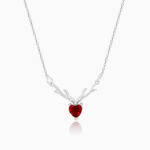 The Inspiration: The Silver Deer Heart in Red Necklace is inspired by the beauty and elegance of the deer. The Design: The silver necklace has a beautiful silhouette of a deer with its antlers studded with a red stone. Celebrate your moments of passion with Nikrish’s Red Romance Collection. 925 Silver Perfect for sensitive skin Length of Chain: 45 cm + 5 cm Adjustable Motif Height: 2.2 cm, Width: 2.8 cm Comes with the Nikrish Jewellery kit and authenticity certificate Content: Necklace Net Qty- 1 unit Styling tip: Style this necklace with a navy blue jumpsuit.