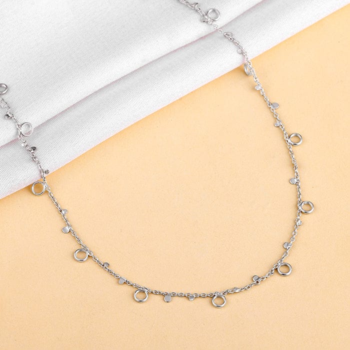 The Inspiration: Nothing says ‘you’ll look stunning’ quite like this necklace. Go ahead, treat yourself today! The Design: This silver necklace for women features alternating tiny disc charms. It also includes open-circle loops for a playful, modern look. 925 Silver Perfect for sensitive skin Length of Chain: 40.5 cm + 5 cm Adjustable Comes with the Nikrish Jewellery kit and authenticity certificate Content: Necklace Net Qty- 1 unit Styling Tip: Wear this with hoop earrings.