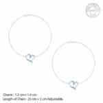 The Inspiration: Catch a drop of morning dew in these heart-shaped designs—shiny, playful, and a little magical. The Design: This silver anklet for women features a curved heart design set with coloured zircons. Fall in love all over again with our exclusive Valentine’s Collection: #WhatTheHeartWants. Here are our curated designs that will speak to your heart. 925 Silver Perfect for sensitive skin Charm : 1.3 cm + 1.4 cm Length of the anklet: 25 cm + 5 cm Adjustable Comes with the Nikrish Jewellery kit and authenticity certificate Content: Anklet Net Qty- 1 unit Styling Tip: Style this with a lower neckline top.