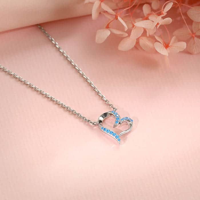 The Inspiration: Catch a drop of morning dew in this heart-shaped necklace—shiny, playful, and a little magical. The Design: This silver necklace for women features a curved heart design set with blue coloured zircons. Fall in love all over again with our exclusive Valentine’s Collection: #WhatTheHeartWants. Here are our curated designs that will speak to your heart. 925 Silver Perfect for sensitive skin Length of chain: 43 cm + 6 cm Adjustable Motif Height: 1.7 cm, Motif Width: 1.5 cm Comes with the Nikrish Jewellery kit and authenticity certificate Content: Necklace Net Qty- 1 unit Styling Tip: Style this with a lower neckline top.