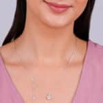 The Inspiration: This necklace is your go-to for days when you need a sassy touch but are unsure about which jewellery to wear. The Design: This silver necklace features a circular motif at the centre with zircons. There is a dangling chain with a small circular motif also studded with zircons attached to it which can be adjusted. 925 Silver Perfect for sensitive skin Length of Chain: 43 cm + 5 cm Adjustable Comes with the Nikrish Jewellery kit and authenticity certificate Content: Necklace Net Qty- 1 unit Styling Tip: Wear this with lemon yellow kaftan dress.