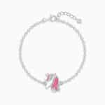 The Inspiration: Perfect for the kid who dances to their own magical beat. This kids bracelet adds a touch of enchantment to every adventure. The Design: This silver bracelet for kids features a charming unicorn head, set in enamel with a white face and a vibrant pink mane and horn. 925 Silver Perfect for kids’ sensitive skin Charm: 0.83 cm x 0.9 cm Length of chain: 12.5 cm + 4 cm Adjustable Comes with the Nikrish Jewellery kit and authenticity certificate Content: Bracelet Net Qty- 1 unit Styling Tip: Pair this with a unicorn-inspired pendant.
