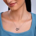 The Inspiration: An eternal knot, for an eternal bond. Perfect for the one who’s tied your heart forever. The Design: This silver pendant for women features two circles–one in silver and the other in black rhodium. 925 Silver with Black Rhodium Perfect for sensitive skin Motif Height: 1.42 cm, Motif Width: 2 cm Length of Chain: 44 cm + 5 cm Adjustable Comes with the Nikrish Jewellery kit and authenticity certificate Content: Pendant with Link Chain Net Qty- 1 unit Styling Tip: Pair this pendant with silver hoops.