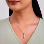 The Inspiration: Go with the flow, but make it sparkle. This pendant is your everyday calm in shimmer form. The Design: This silver pendant for women features two curved lines, almost forming the shape of an eye, set with zircons and coloured stones. 925 Silver Perfect for sensitive skin Motif Height: 2.61 cm, Motif Width: 0.71 cm Length of Chain: 44 cm + 6.5 cm Adjustable Comes with the Nikrish Jewellery kit and authenticity certificate Content: Pendant with Link Chain Net Qty- 1 unit Styling Tip: Wear this with an off white kurta set.