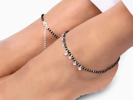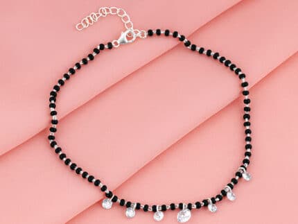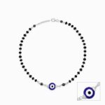 The Inspiration: Carry only the good vibes. Let this anklet guide your path and this can be your everyday wear. The Design: This silver anklet features an evil eye symbol in the centre of a black beaded chain. 925 Silver Perfect for sensitive skin Length of the anklet: 25.5 cm + 3.5 cm Adjustable Comes with the Nikrish Jewellery kit and authenticity certificate Content: Anklet Net Qty- Single or pair, as chosen by you! Styling Tip: Suit this anklet with a khaki pencil skirt.