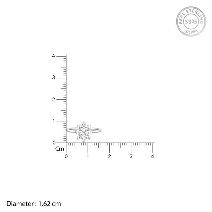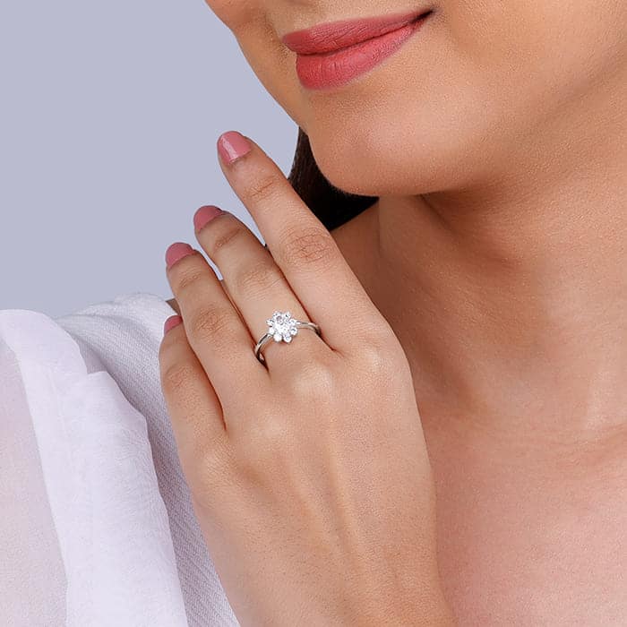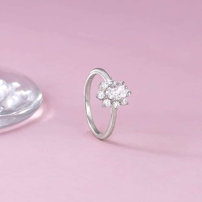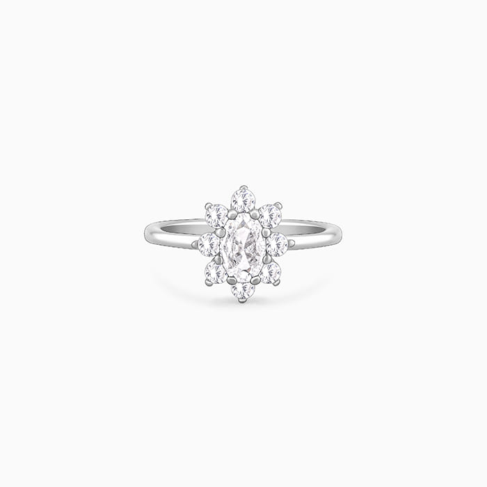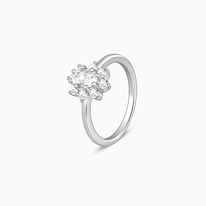 Silver Floral Ellipse Ring