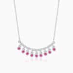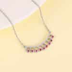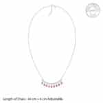 The Inspiration: Whether you’re going all-out or keeping it low-key, this necklace just fits. No overthinking, just instant style. The Design: This silver necklace for women features a curved central piece with a pave setting studded with zircons. Pink-coloured circular stones dangling below. 925 Silver Perfect for sensitive skin Motif Height: 1.4 cm, Motif Width: 3 cm Length of Chain: 44 cm + 6 cm Adjustable Comes with the Nikrish Jewellery kit and authenticity certificate Content: Necklace Net Qty- 1 unit Styling Tip: Pair this with statement earrings.