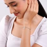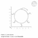 The Inspiration: When your wrist needs a little spark but you want to keep it sleek, this half-moon bracelet is the perfect choice. It’s simple sophistication that works just as hard as you do. The Design: This silver bracelet for women features a contemporary paperclip chain set with an assortment of crescent moon charms. Some moons are polished and feature a single zircon stone, while others are entirely pavé-set with sparkling zircons, adding varied texture and brilliance. 925 Silver Perfect for sensitive skin Charm: 1.1 cm x 0.8 cm Length of Chain: 15 cm + 4 cm Adjustable Comes with the Nikrish Jewellery kit and authenticity certificate Content: Bracelet Net Qty- 1 unit Styling Tip: Pair this with a tank top and cargo pants.
