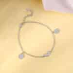 The Inspiration: Like a hug that never lets go, the perfect bracelet stays with you. It adds elegance, charm, and a quiet kind of confidence wherever you go. The Design: This silver bracelet for women features two circular motifs on each side, each studded with sparkling zircons. At the centre, a beautiful zircon heart design adds a touch of elegance. 925 Silver Perfect for sensitive skin Motif Height: 0.9 cm + 0.7 cm Length of Chain: 15 cm + 4 cm Adjustable Comes with the Nikrish Jewellery kit and authenticity certificate Content: Bracelet Net Qty- 1 unit Styling Tip: Stack multiple silver bracelets for a layered look, mixing textures and metals.