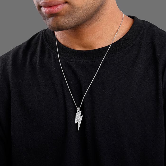 Silver Lightning Pendant With Box Chain For Him