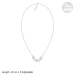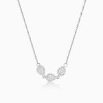 The Inspiration: The Silver Love of Pear Necklace is inspired by fond memories from our childhood when we spent time playing outdoors under the sun. The Design: The silver necklace has three pear-shaped structures joined together with round zircon studded shapes in between. 925 Silver AAA+ Quality Zircons Length of necklace is 45 cm with 5 cm adjustable portion Dimensions: 3.7 cm x 0.9 cm Rhodium finish to prevent tarnish Comes with the Nikrish Jewellery kit and authenticity certificate Net Qty – 1 unit Styling Tip: Style this with a midi maroon dress with sweetheart neckline.