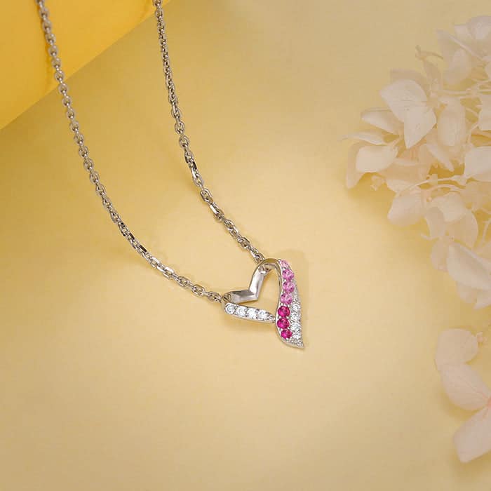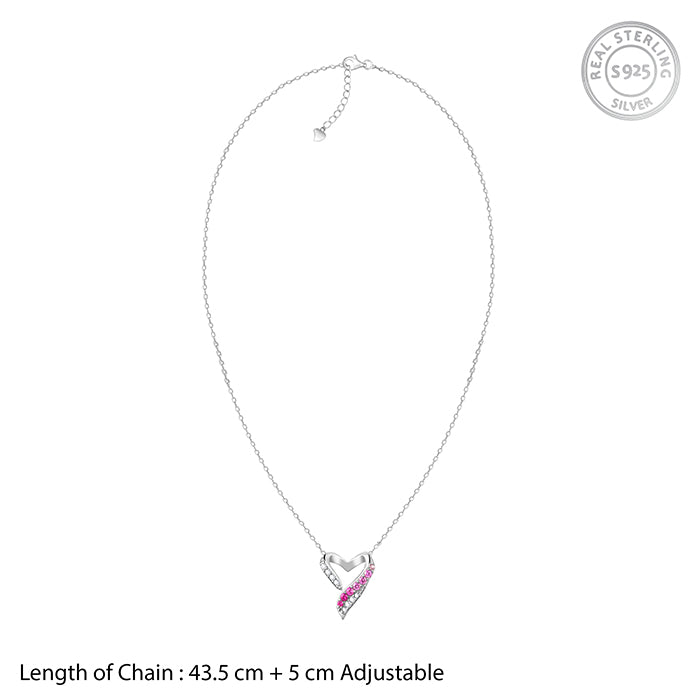 The Inspiration: This necklace is proof that your love for quirky fashion is next level. The Design: This silver necklace for women showcases a curved, open-heart design, set with alternating rows of pink and zircon stones, creating a dynamic, wing-like effect. Fall in love all over again with our exclusive Valentine’s Collection: #WhatTheHeartWants. Here are our curated designs that will speak to your heart. 925 Silver Perfect for sensitive skin Motif Height: 1.51 cm, Motif Width: 1.23 cm Length of Chain: 43.5 cm + 5 cm Adjustable Comes with the Nikrish Jewellery kit and authenticity certificate Content: Necklace Net Qty- 1 unit Styling Tip: Pair this with a solid-coloured outfit for a stunning, balanced look.