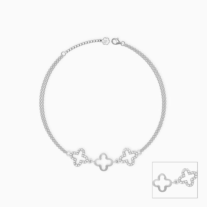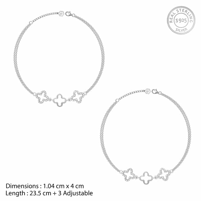 The Inspiration: The Silver Orions Anklet is inspired by the silent moments spent gazing at the night sky, with loved ones. The Design: This silver anklet features small zircon-studded stars with a simple silver star in the centre. 925 SilverHypoallergenic – Perfect for sensitive skin The anklet length is 23.5 cm with a 3 cm adjustable portion Dimensions: 1.04 cm x 4 cm Comes with the Nikrish Jewellery kit and authenticity certificate Net Qty- 1 unit Styling Tip: Style this with your little black dress.