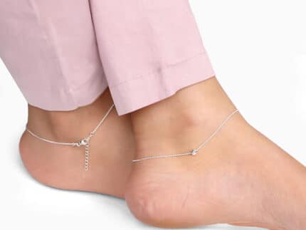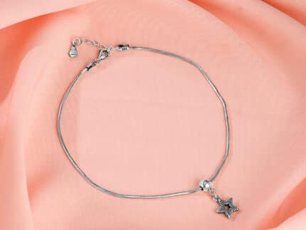 The Inspiration: The Silver Orions Anklet is inspired by the silent moments spent gazing at the night sky, with loved ones. The Design: This silver anklet features small zircon-studded stars with a simple silver star in the centre. 925 SilverHypoallergenic – Perfect for sensitive skin The anklet length is 23.5 cm with a 3 cm adjustable portion Dimensions: 1.04 cm x 4 cm Comes with the Nikrish Jewellery kit and authenticity certificate Net Qty- 1 unit Styling Tip: Style this with your little black dress.