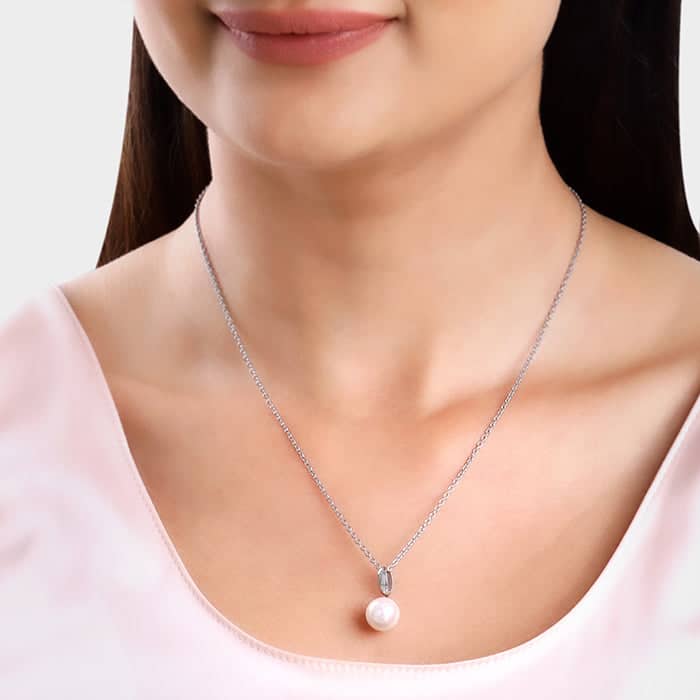 The Inspiration: This pendant doesn’t try too hard, it doesn’t need to. It’s the kind of pearl piece that effortlessly owns the spotlight. The Design: This silver pendant for women features a classic pearl. This pendant comes with a link chain. 925 Silver Perfect for sensitive skin Motif Height: 2 cm, Motif Width: 1 cm Length of Chain: 43 cm + 4 cm Adjustable Comes with the Nikrish Jewellery kit and authenticity certificate Content: Pendant with Link Chain Net Qty- 1 unit Styling Tip: Style this with pearl studs.