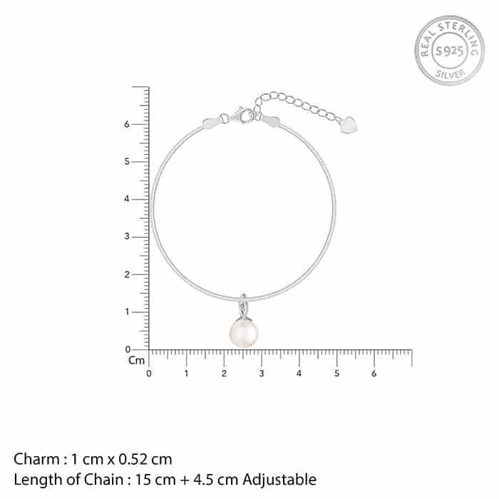 The Inspiration: A pearl bracelet that speaks quiet confidence. Simple, elegant, and always in style – because real beauty never tries too hard. The Design: This silver bracelet for women has a circular pearl dangling in the centre. 925 Silver Perfect for sensitive skin Charm: 1 cm x 0.52 cm Length of chain: 15 cm + 4.5 cm Adjustable Comes with the Nikrish Jewellery kit and authenticity certificate Content: Bracelet Net Qty- 1 unit Styling Tip: Pair this with silver earrings.