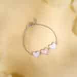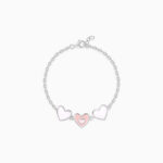 The Inspiration: Full of love, mischief, and magical pink twinkle, it’s made for your little one who shines from the inside out! 💗 The Design: This silver kids bracelet features triple heart motifs with colourful enamel. 925 Silver Perfect for kids’ sensitive skin Motif Size: Height – 0.8 cm, Motif Width – 3.4 cm Length of Chain: 12 cm + 1.5 cm Adjustable Comes with the Nikrish Jewellery kit and authenticity certificate Content: Bracelet Net Qty- 1 unit Suitable for kids aged 0 – 1 Years Styling Tip: Style this with heart-inspired studs.