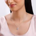 The Inspiration: A quirky twist on elegance, this radiant pendant is a perfect mix of bold design and sparkling glam. You’ll be the centre of attention wherever you go! The Design: This silver pendant for women features a small rhombus-shaped element set with zircons, attached to a larger semi-rhombus shape. 925 Silver Perfect for sensitive skin Motif Height: 1.6 cm, Motif Width: 1.6 cm Length of Chain: 43 cm + 4 cm Adjustable Comes with the Nikrish Jewellery kit and authenticity certificate Content: Pendant with Link Chain Net Qty- 1 unit Styling Tip: Style this with a multicoloured tank top and baggy pants.