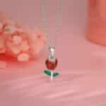 The Inspiration: A gift of love that will never wilt. This will always remind her of your affection. The Design: This silver pendant with a link chain features a rose motif coated with red and green enamel. 925 Silver Perfect for sensitive skin Motif Height: 1.8 cm, Motif Width: 0.8 cm Length of Chain: 43 cm + 4 cm Adjustable Comes with the Nikrish Jewellery kit and authenticity certificate Content: Pendant with Link Chain Net Qty- 1 unit Styling Tip: Pair this with a baby pink gown.