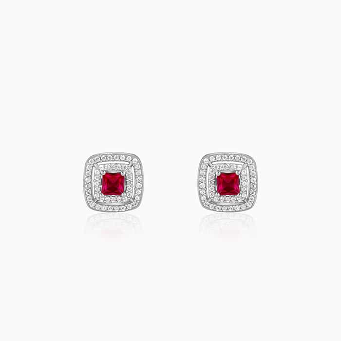 The Inspiration: A hint of red, a whole lot of royalty for the one who owns her glow regally. Make these yours today! The Design: These womens silver earrings have a square shape each. Two rows of zircons gracefully line a square red coloured stone. 925 Silver Perfect for sensitive skin Earrings Size: Height – 1.1 cm, Width – 1.1 cm Comes with the Nikrish Jewellery kit and authenticity certificate Content: Earrings Net Qty- 1 pair Styling Tip: Pair these silver studs with a silver pendant, also with a hint of red.