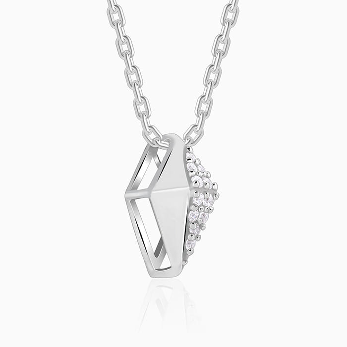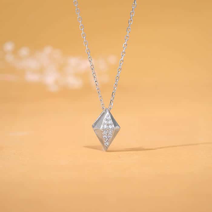 Silver Shiny Rhombus Pendant With Link Chain