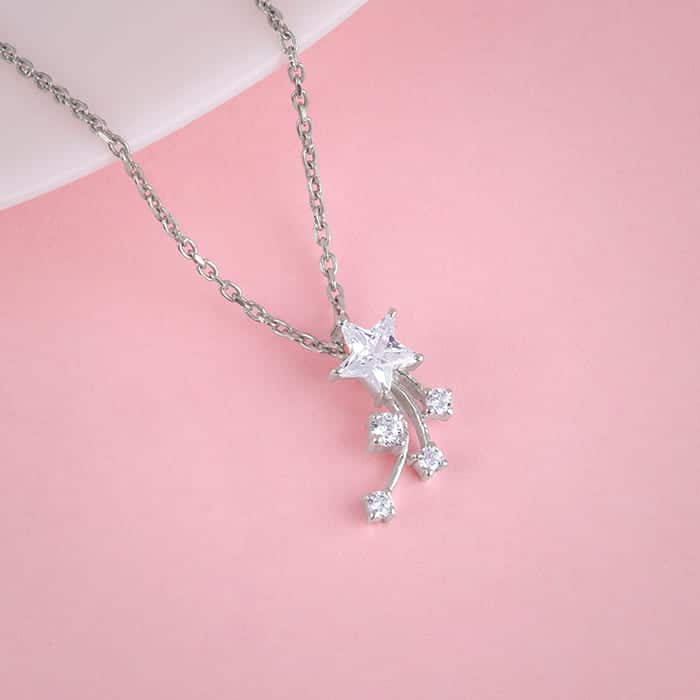 The Inspiration: A little star power never hurt anybody, right? This one’s got just the right glow, easy to style from Monday meetings to Sunday brunch. The Design: This silver pendant for women features a star motif. Stardust trails are attached below the star, and four zircons are placed on it. The pendant comes paired with a link chain. 925 Silver Perfect for sensitive skin Motif Height: 1.6 cm, Motif Width: 1.2 cm Length of Chain: 43 cm + 4 cm Adjustable Comes with the Nikrish Jewellery kit and authenticity certificate Content: Pendant with Link Chain Net Qty- 1 unit Styling Tip: Pair this with star earrings.