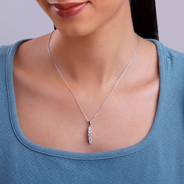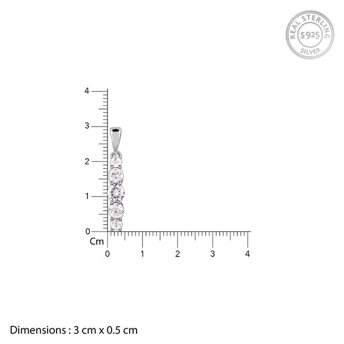 The Inspiration: Nothing says ‘I care’ like a beautifully crafted pendant. It’s a gift that lasts forever, reminding them of the love behind every sparkle. The Design: This silver pendant with a link chain for women features circular-shaped zircons aligned in a row. 925 Silver Perfect for sensitive skin Motif Height: 3 cm, Motif Width: 0.5 cm Length of Chain: 43 cm + 4 cm Adjustable Comes with the Nikrish Jewellery kit and authenticity certificate Content: Pendant with Link Chain Net Qty- 1 unit Styling Tip: Style this silver pendant with matching earrings.