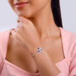 The Inspiration: ‘Cos elegance is effortless when you wear something that truly resonates with you. The Design: This silver bracelet for women features a flower design with blue enamel and zircon-studded petals. Delicate floral embellishments along the chain enhance its elegance. 925 Silver Perfect for sensitive skin Motif Height: 1.4 cm + 1.5 cm Length of Chain: 15 cm + 5 cm Adjustable Comes with the Nikrish Jewellery kit and authenticity certificate Content: Bracelet Net Qty- 1 unit Styling Tip: Style this silver bracelet with an oxidised silver ring.