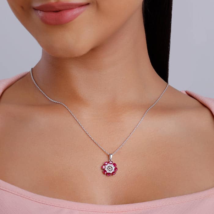 The Inspiration: This flower pendant is your daily reminder that blooming is always in style. Wear it and let your inner sparkle do the talking! The Design: This silver pendant with a link chain for women features a beautiful flower motif. The design is brought to life with coloured stones encircling shimmering zircons. 925 Silver Perfect for sensitive skin Motif Height: 2.1 cm, Motif Width: 1.4 cm Length of Chain: 43.5 cm + 5.5 cm Adjustable Comes with the Nikrish Jewellery kit and authenticity certificate Content: Pendant with Link Chain Net Qty- 1 unit Styling Tip: Pair this with a pink dress.
