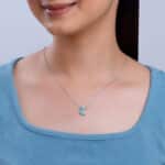 The Inspiration: Gift a silver pendant that speaks the language of your soul. A piece that’s as unique and brilliant as the person wearing it. The Design: This silver pendant with a link chain for women features a crescent moon design with inlay and zircons. Let the stunning elegance of Nikrish Sky High inspire you to chase every dream and celebrate every milestone. 925 Silver Perfect for sensitive skin Motif Height: 1.3 cm, Motif Width: 1.2 cm Length of Chain: 44 cm + 5 cm Adjustable Comes with the Nikrish Jewellery kit and authenticity certificate Content: Pendant with Link Chain Net Qty- 1 unit Styling Tip: Style this silver pendant with silver studs.