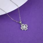 The Inspiration: Luck’s got a new look—and she’s got links! This clover doesn’t just bring fortune, it brings fire to your neckline. The Design: This silver pendant for women features a clover design set with a circular zircon stone at the centre. Every leaf is encrusted with small zircons, while square-cut zircons accentuate the middle for added brilliance. 925 Silver Perfect for sensitive skin Motif Height: 2 cm, Motif Width: 1.3 cm Length of Chain: 43 cm + 4 cm Adjustable Comes with the Nikrish Jewellery kit and authenticity certificate Content: Pendant with Link Chain Net Qty- 1 unit Styling Tip: Team this with a baby dot puff sleeve dress.