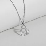 Silver Zircon Double Heart Pendant with Link Chain