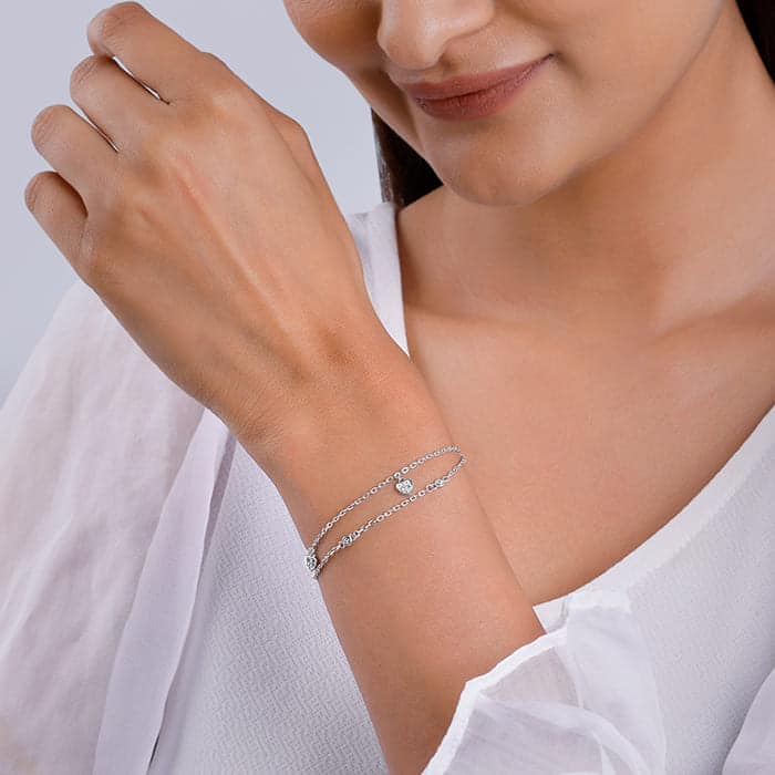 The Inspiration: A happy heart brings out a pretty smile. This bracelet is made for those heartfelt happy moments. Gift this to spark some big smiles. The Design: This silver bracelet features two layers, one with circular designs and the other with heart charms studded sporting zircons, all equally spaced. 925 Silver Perfect for sensitive skin Length of chain: 16.5 cm + 3.5 cm Adjustable Comes with the Nikrish Jewellery kit and authenticity certificate Content: Bracelet Net Qty- 1 unit Styling Tip: Style this bracelet with a Rani pink midi dress.
