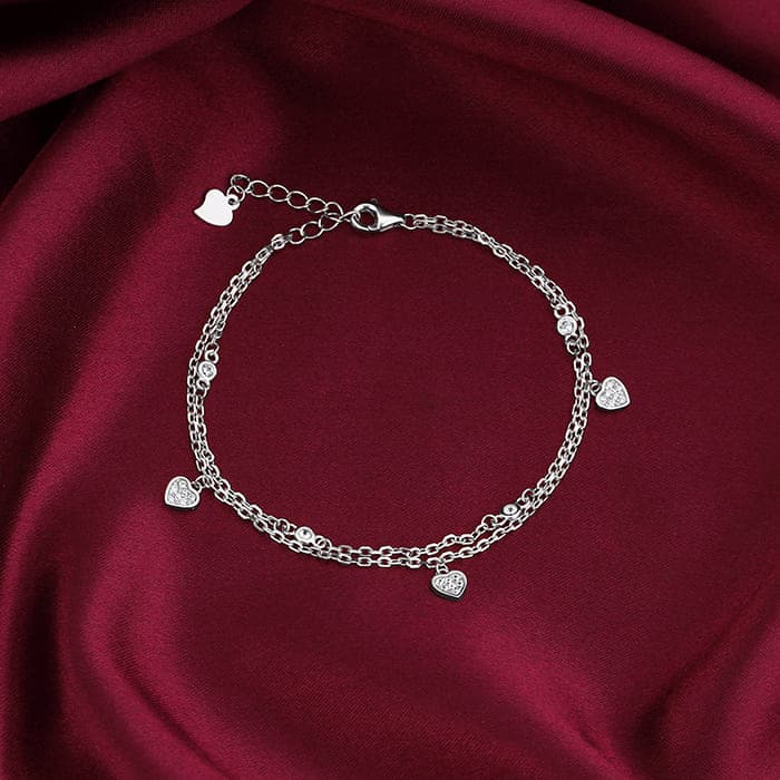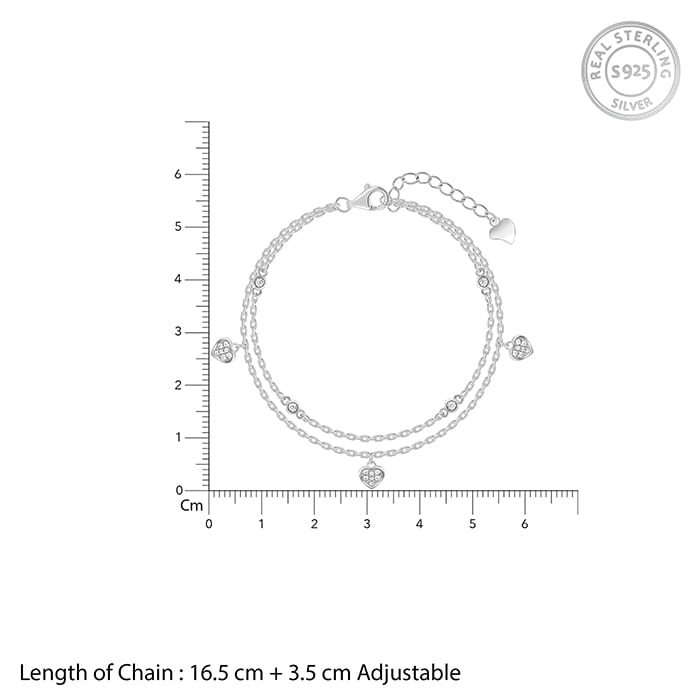 Silver Zircon Heart Charm Bracelet