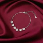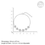 The Inspiration: This bracelet represents the love and care you receive from your surroundings, reminding you to cherish every person. The Design: This silver bracelet features heart motifs studded with zircons. 925 Silver Perfect for sensitive skin Motif Size: Height – 5.6 cm, Width – 0.7 cm Length of chain: 15.5 cm + 4.5 cm Adjustable Comes with the Nikrish Jewellery kit and authenticity certificate Content: Bracelet Net Qty- 1 unit Styling Tip: Suit this with a fit and flare-dress.