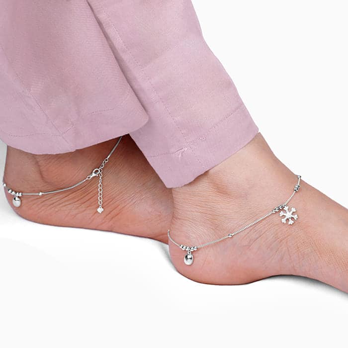 Silver Zircon Snowflake Anklet