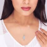 The Inspiration: The Silver Zircon Wing It Pendant is inspired by the relentless passion to soar higher with flying colours! Just wing it – those dreams, hopes, and aspirations in style! The Design: The Silver Zircon Wing It Pendant has a gorgeous design of wings layered seamlessly and studded with gorgeous zircons. Includes 16″ + 2″ adjustable Sterling Silver Chain 925 Silver AAA+ Quality Zircons Charm: 29.7 mm x 9.7 mm Rhodium finish to prevent tarnish Comes with the Nikrish Jewellery kit and authenticity certificate Styling Tips: Go for a velvet charcoal grey midi dress and pair it up with this pendant! Shipping & Returns : Free express shipping 30 day returns